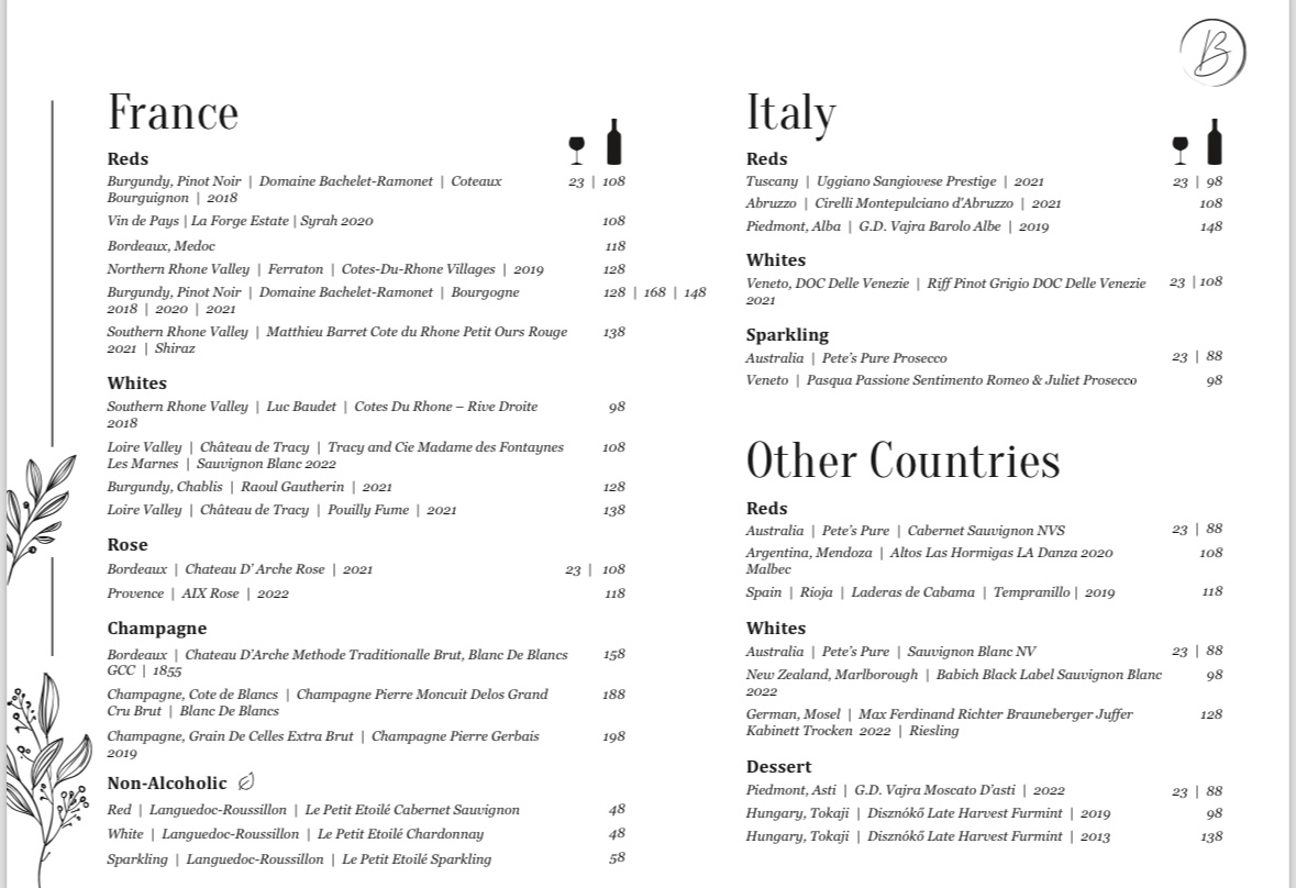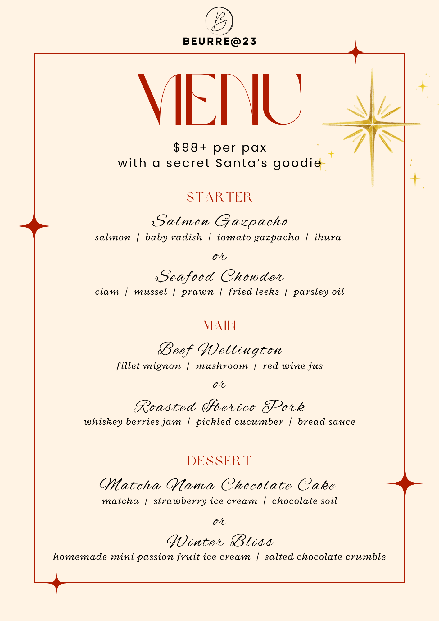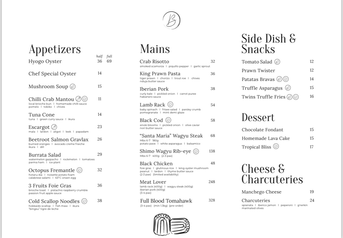 Menu from Beurre@23