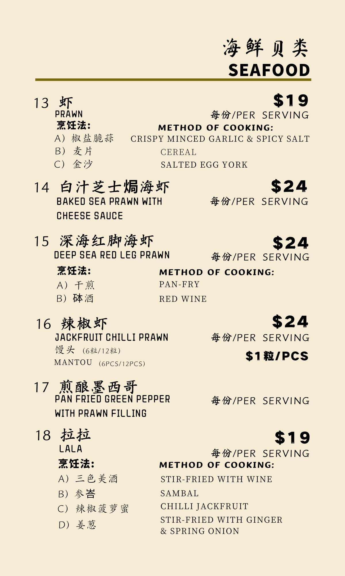 Method of cooking: crispy minced garlic & spicy salt, cereal, or salted egg yolk