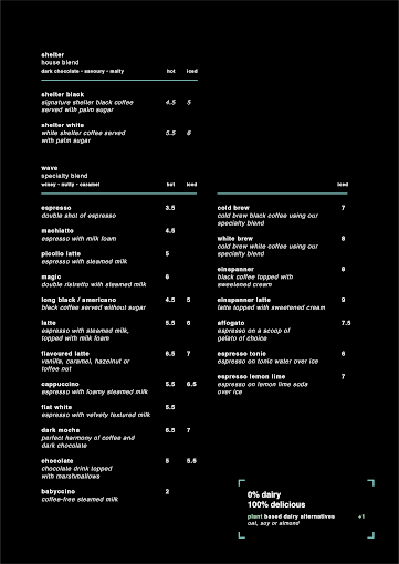 Menu from the shelter